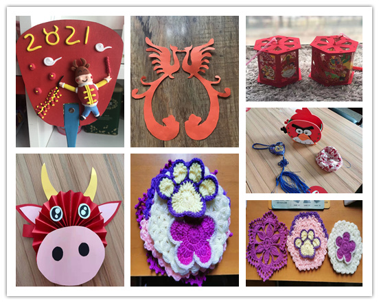 紧接着,巧手教师利用现有的多种材料,充分发挥自己的巧思和无限的想象力,通过缝、剪、涂、折、卷、粘等各种制作手法,一幅幅艺术作品跃然于屏:有精美的窗花剪纸、有立体的拼贴摆件、有形式各样的编织品、有与自然材料巧妙结合的手捧花……透过一幅幅作品,看到了公共基础部老师们的独具匠心和心灵手巧。