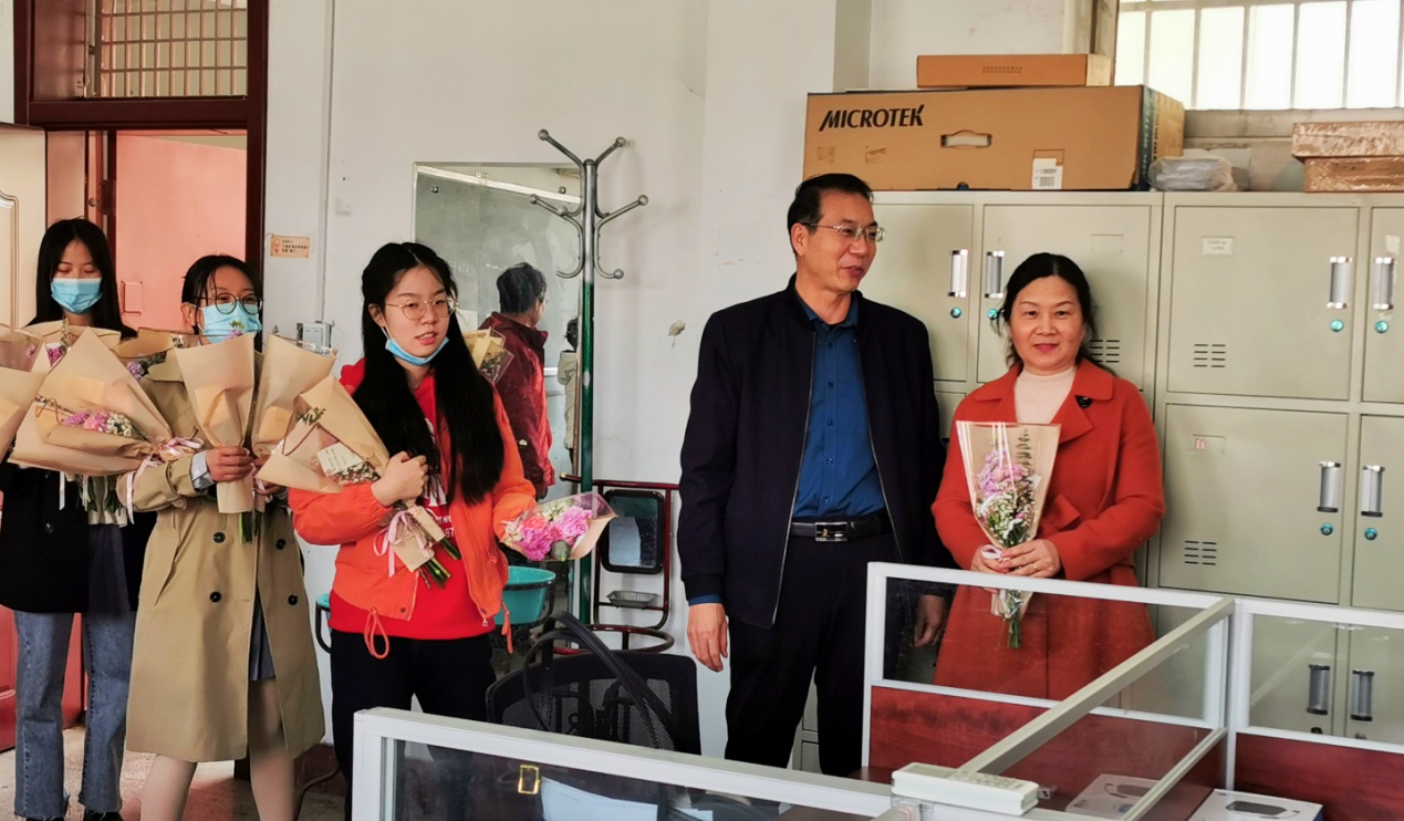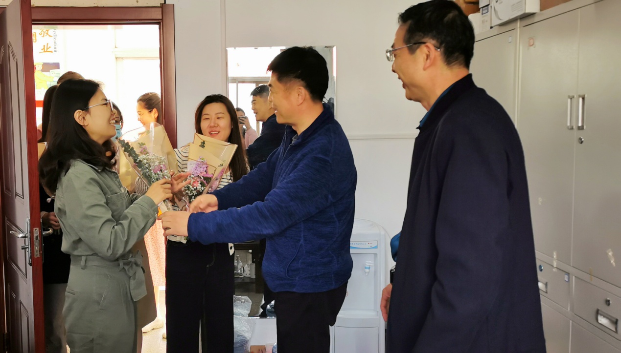 3月8日,校工会又为女职工送来了节日的鲜花,院长王长旭、副书记任国华带领总支委员在课间亲自把节日的问候送到每位女教师手中,让每位接受鲜花的女职工充分感受到了组织的关怀和节日的祝福,她们表示:幸福指数明显提升,推进“双高校”的劲头更足了。
